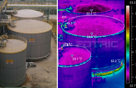建议采用FOTRIC飞础科慧巡检系统对油气储运设备进行定期巡检,或采用飞础科在线防火预警监测系统对储运罐区进行全天候实时监测,一旦发现违规动火、外来火源入侵以及储运设备出现过热故障,都可以立即通过声光报警或应急通讯方式将报警信息推送到相关负责人员的手机上,及时进行人工干预,确保油气储运的设备设施都于正常运行状态。